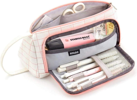 Cartuchera Cuadros rosa 2 cierres Angoo (solo cartuchera)