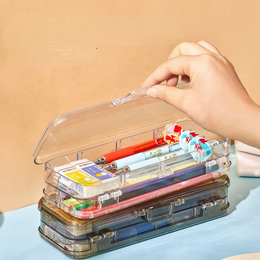 Cartuchera transparente premium doble espacio y divisiones-1 pza