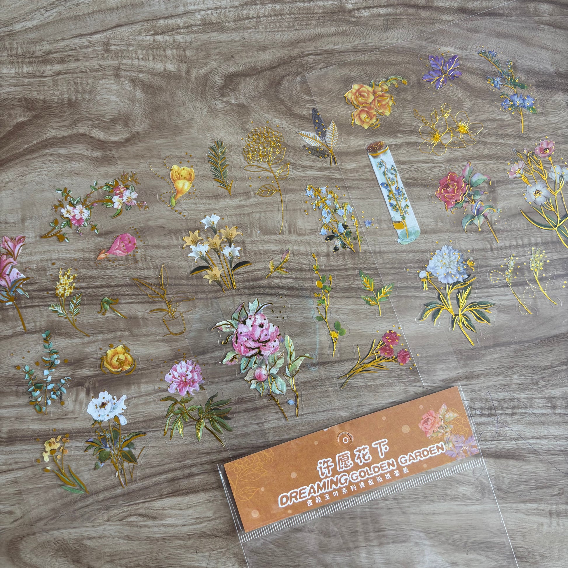 Flores con foil dreaming golden-3 pzas