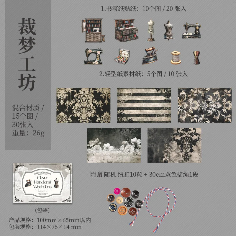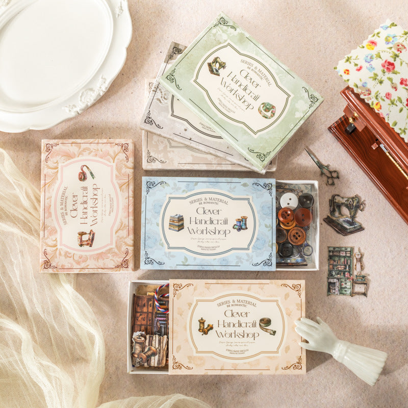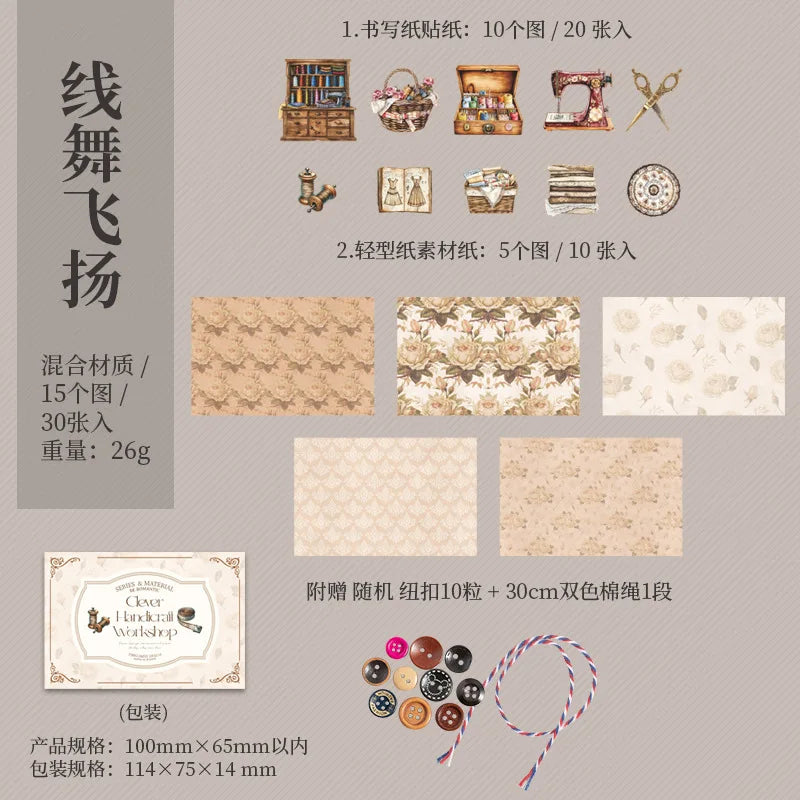 Cajitas papel + stickers costura-30 pzas