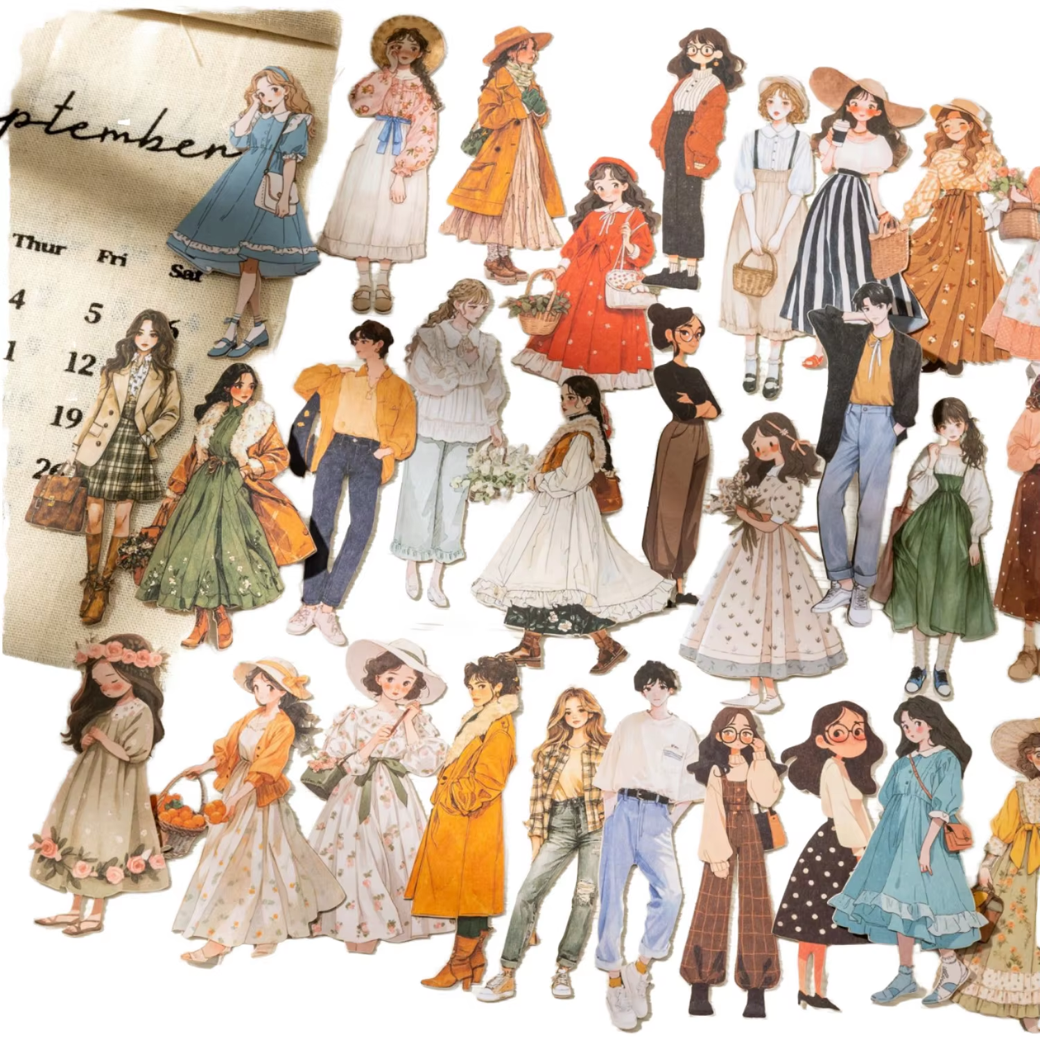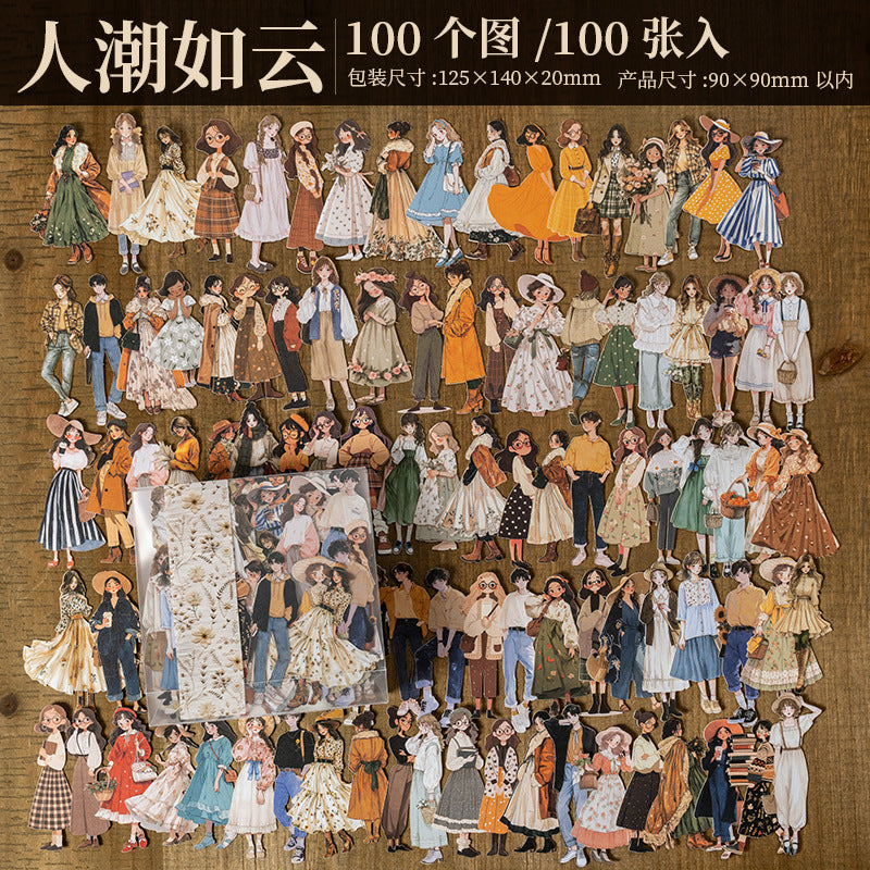 Pack de stickers muñequitas cartonaje-100 pzas